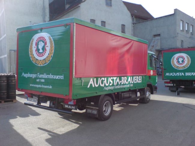 Die LKW´s der Augusta Brauerei sind durch die Beschriftung zum optimalen Werbeträger in Augsburg, Stadt und Land geworden. Ständig in