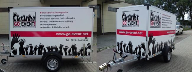 Durch eine bewegliche Werbefläche, wie einen Anhänger, lassen sich die unteschiedlichsten Werbezwecke und Zielgruppen ansprechen. Gezielt an